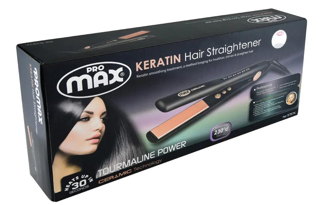 اطو مو پرومکس مدل ۵۷۵۷ مناسب برای کراتین کردن مو حداکثر دارای ۲۳۰ سانتی گراد کف جنس سرامیک پیشرفته قابلیت تغییر درجه حرارت